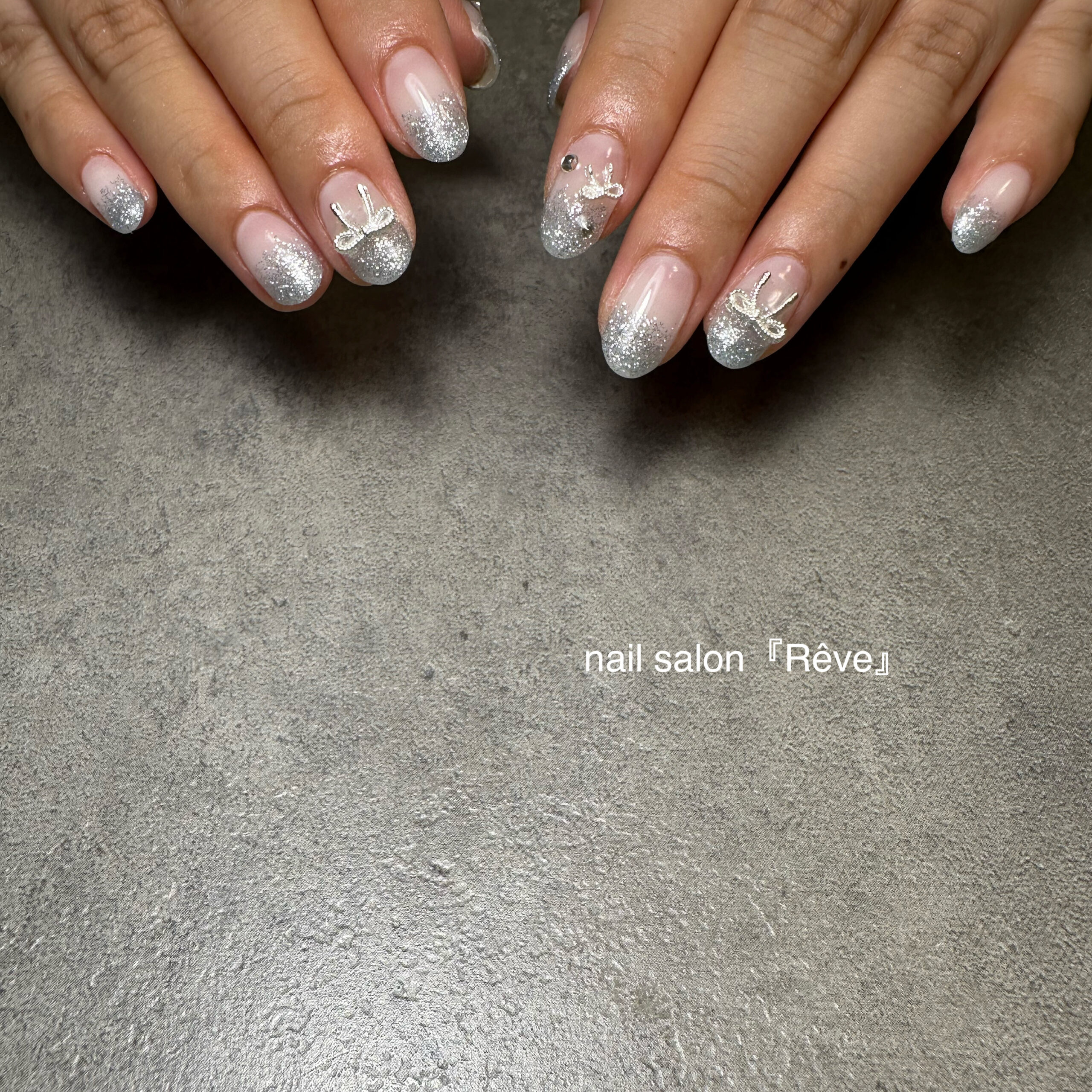 きらめくシルバーグラデーションに、立体リボンをプラス🎀